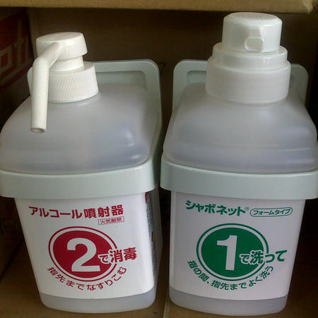 ①號(hào)瓶的洗手液為泡沫型。